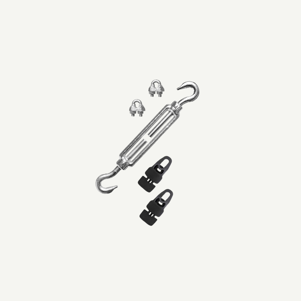 • Ein Spannschloss sowie eine Drahtseilklemme