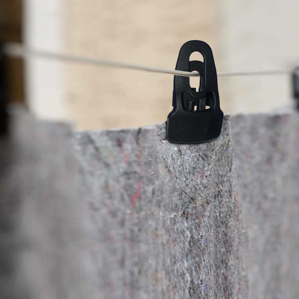 • Statt weniger zuverlässiger eingestanzter Ösen nutzen wir Clips zur sicheren Anbringung. Beachte, dass die Materialdichte geringfügig variieren kann, was die Robustheit der Matte beeinflusst.