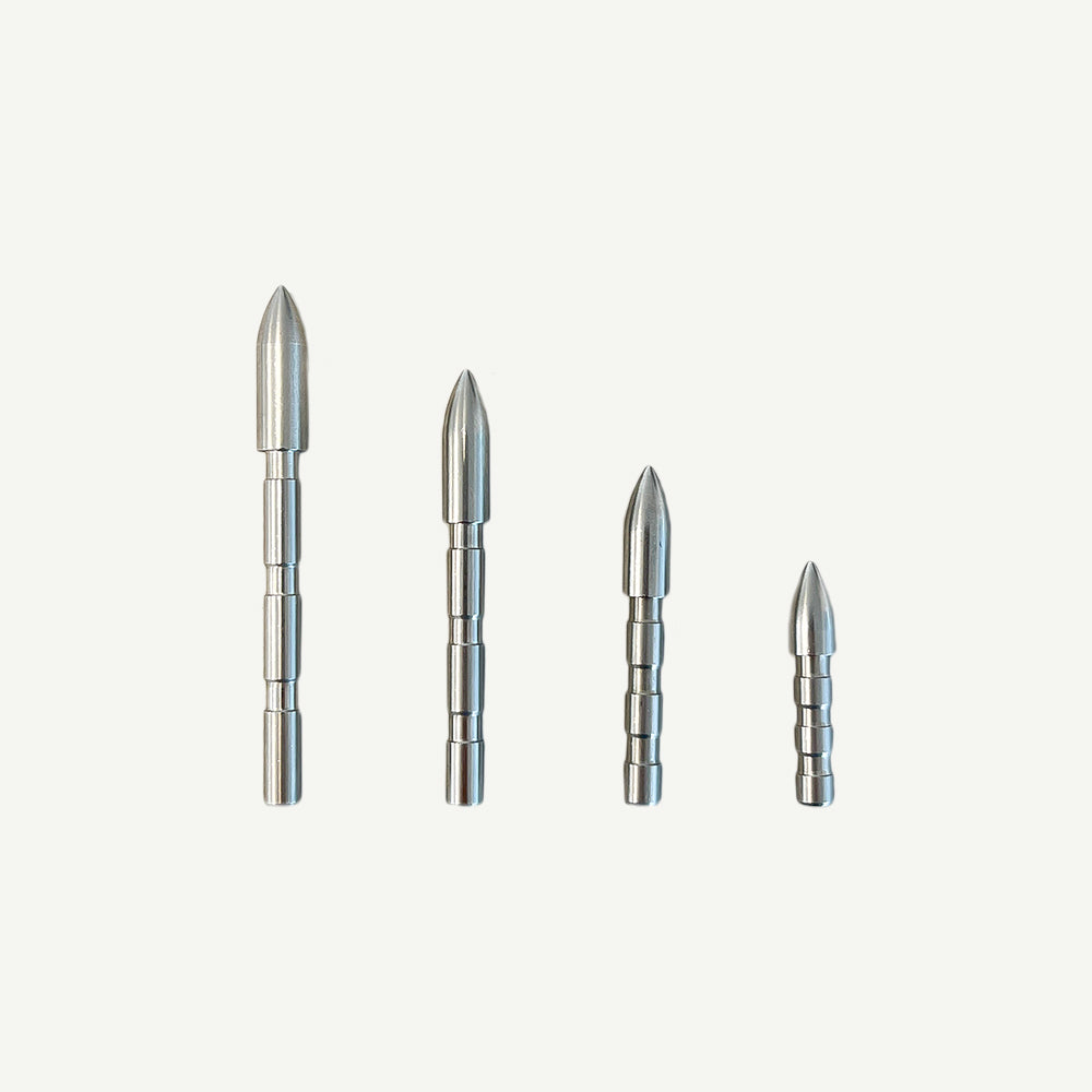 Die Penthalon Slim Line Edelstahlspitze ist in verschiedenen Gewichten erhältlich, um deinen Pfeilen die optimale Balance zu verleihen. Von 50 Grain, ideal für Spinewerte zwischen 1600 und 2000, bis zu 125 Grain für steifere Spinewerte um 400 bis 500 – hier findest du die perfekte Spitze für dein Setup. Kein mühsames Zuschneiden mehr per Hand – die Spitzen sind in festen Gewichtsklassen verfügbar und direkt einsatzbereit.