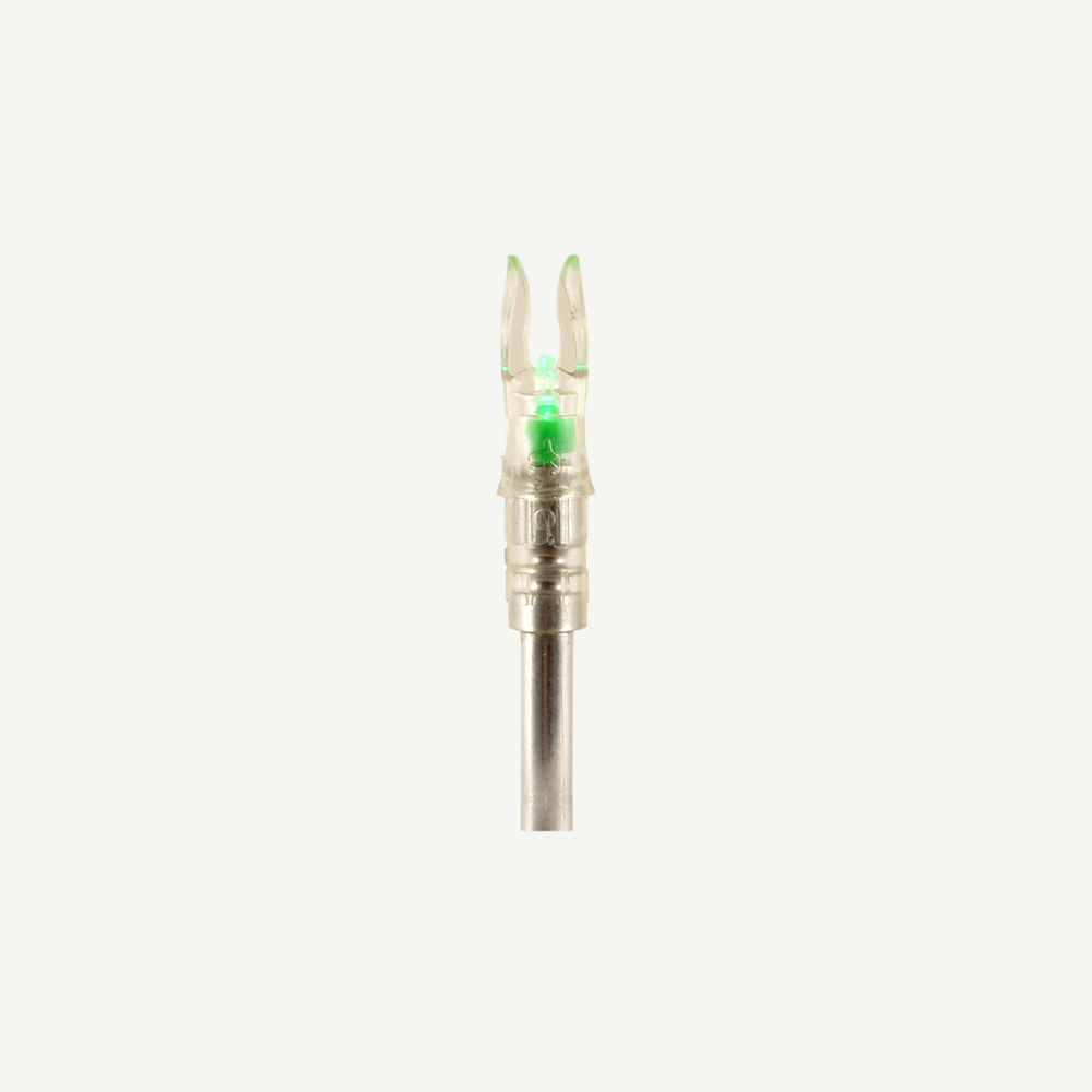 Im Innenbereich der Nightfire Nocke befindet sich ein kleiner Schalter welcher beim Abschuss des Pfeils aktiviert wird. Die Nocke wird mittels einer Pfeilspitze oder des im Lieferumfang enthaltenen Metalstiftes wieder deaktiviert. Dazu befindet sich an der Nockseite eine kleine Öffnung.