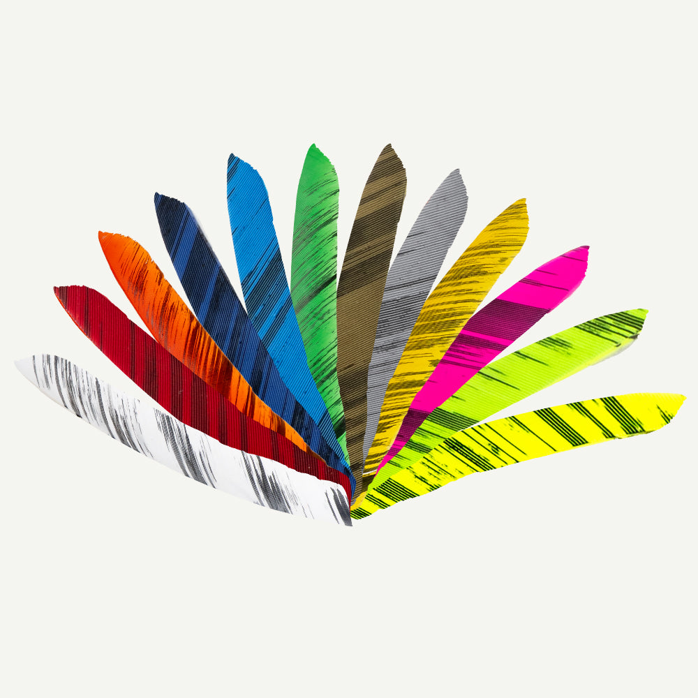 Für unsere Camo-Federn verwenden wir echte Truthahnfedern, die in 12 verschiedenen Camo-Farbtönen sorgfältig coloriert werden. So entstehen faszinierende Muster, die Natur und Design perfekt miteinander verbinden – ideal für Bogenschützen, die ihren Pfeilen eine persönliche Note verleihen möchten.