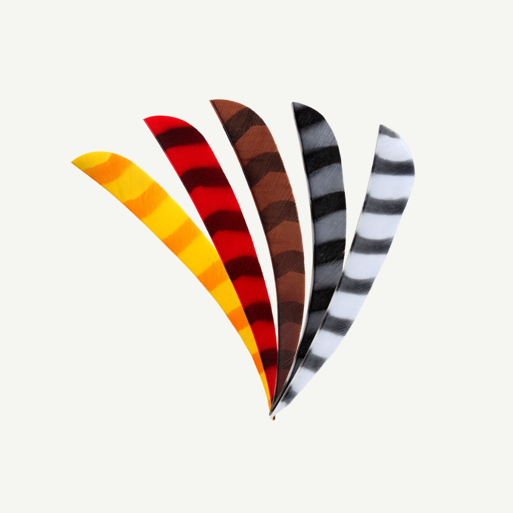 Federn mit barred Farbmustern verleihen Ihrem Pfeil ein besonderes Aussehen und werden von Bogenschützen auf der ganzen Welt zur Darstellung des eigenen Stils benutzt.