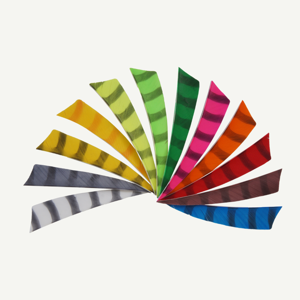 Federn mit barred Farbmustern verleihen Ihrem Pfeil ein besonderes Aussehen und werden von Bogenschützen auf der ganzen Welt zur Darstellung des eigenen Stils benutzt.