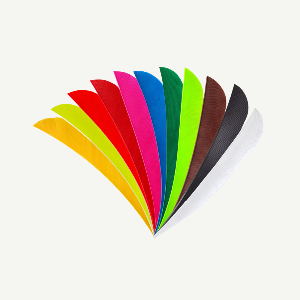 Pfeile mit Federn in der Länge von 3 Zoll werden im Bereich des traditionellen Bogenschießens wohl am häufigsten für Bögen mit niedrigerem Zuggewicht und Kinderpfeile verwendet. So können auch bei geringeren Zuggewichten höhere Pfeilgeschwindigkeiten realisiert werden. Die runde und harmonische Form der Parabol Federn wird von vielen Bogenschützen in der ganzen geschätzt.