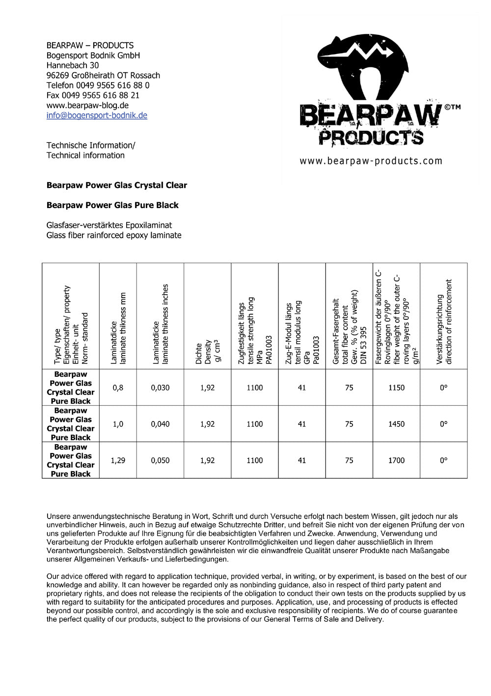 Jeder einzelne Bodnik Bow wird ausschließlich mit unserem eigenen Bearpaw Power Glas hergestellt.