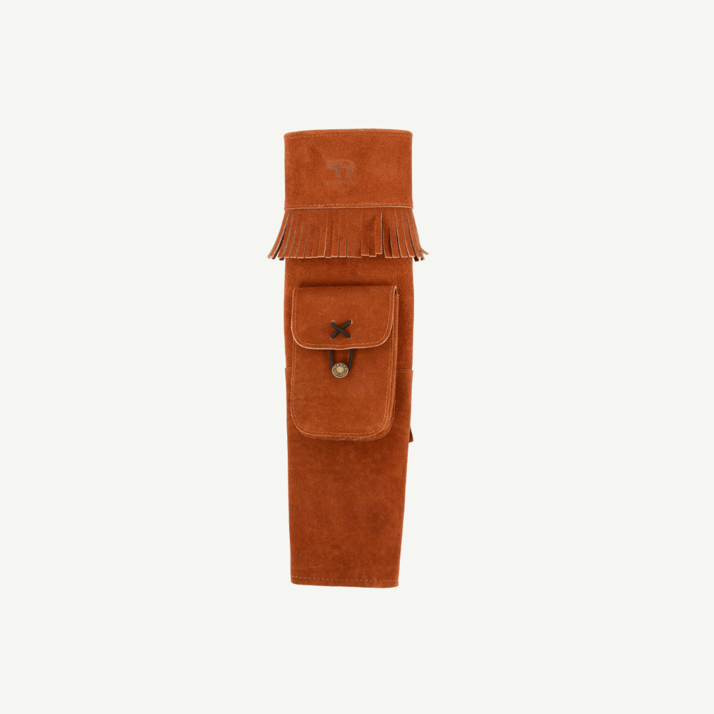 Der Indian Summer ist aus schönem Wildleder in honigbrauner Farbe hergestellt. Der eher schlicht und klein gehaltene Rückenköcher ist ein praktischer Allrounder, der genügend Platz für bis zu 24 Pfeile bietet. In der aufgesetzten Zubehörtasche lassen sich zusätzlich einige wichtige Zubehörteile unterbringen.